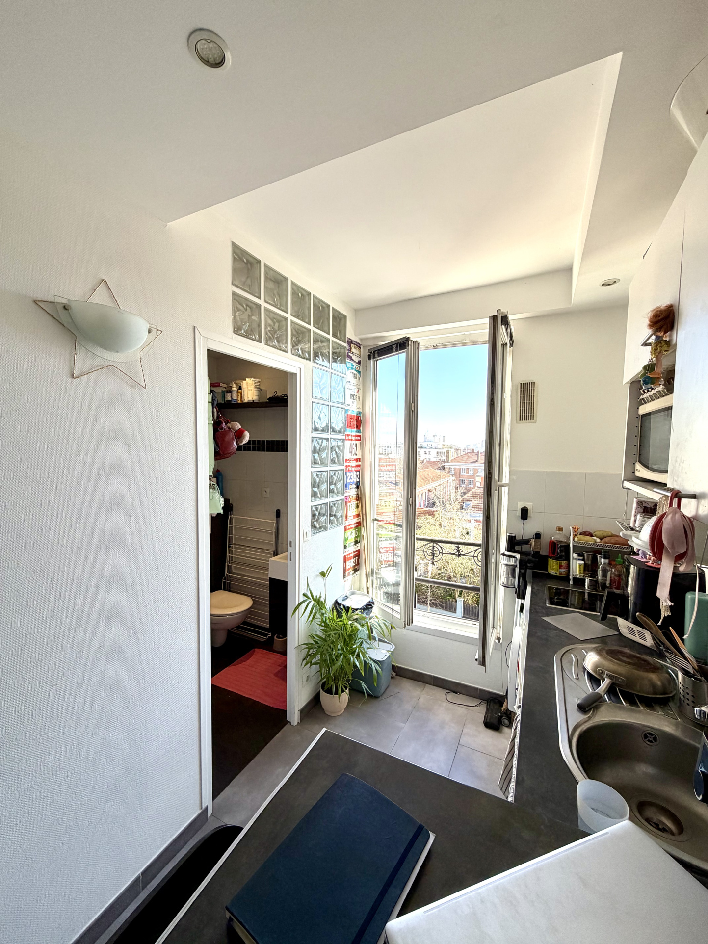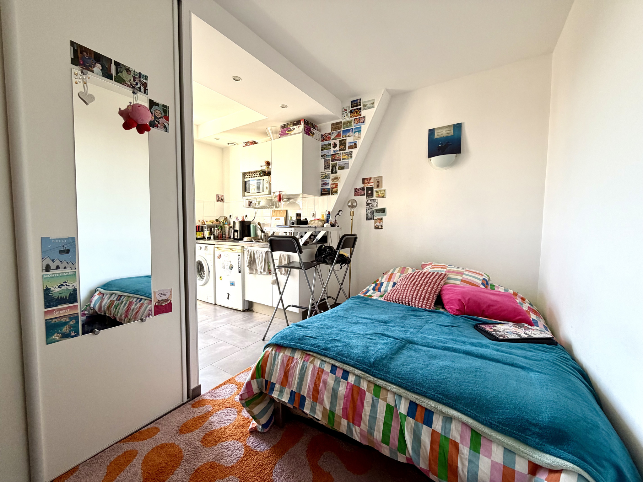 Située au dernier étage, cette pépite en très bon état général ne nécessite aucun travaux. Son agencement intelligent offre un espace de vie confortable avec une petite cuisine ouverte.