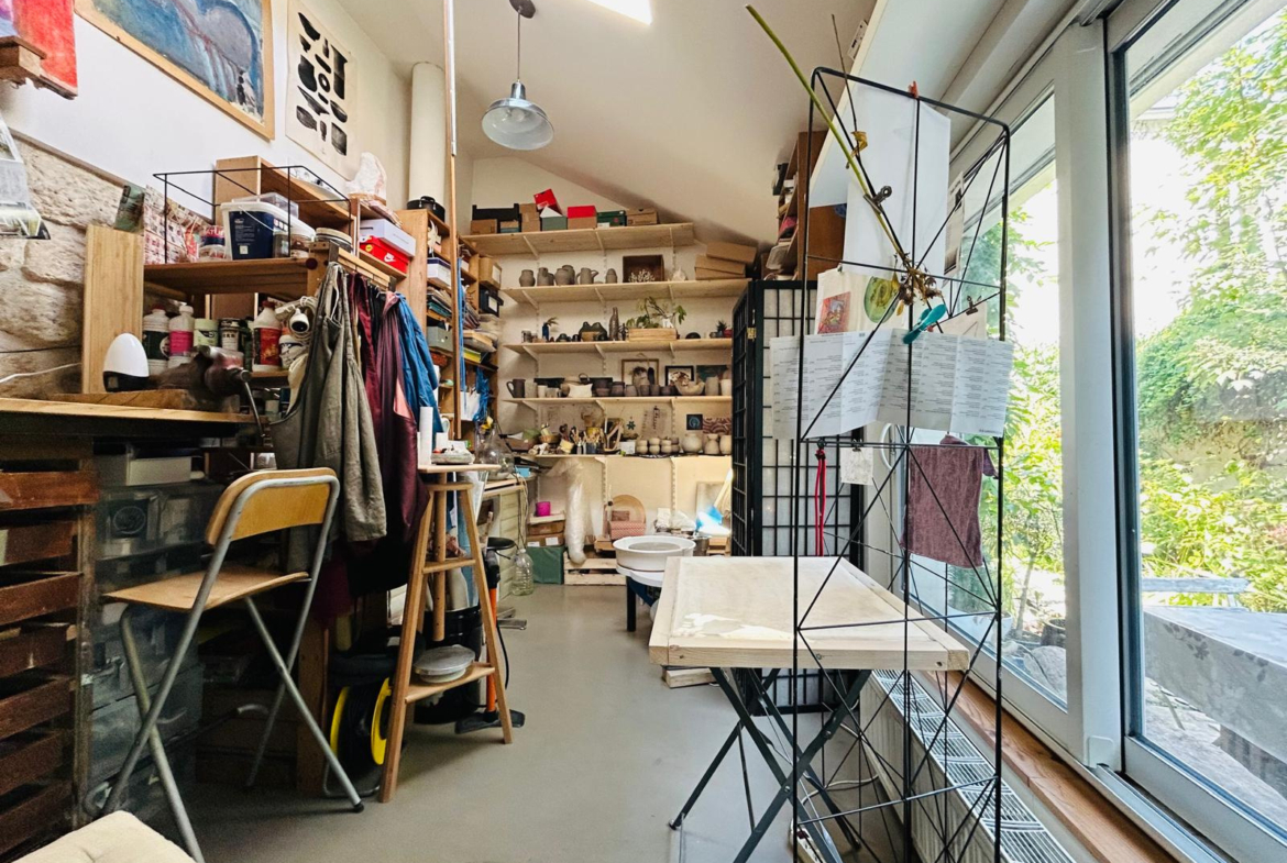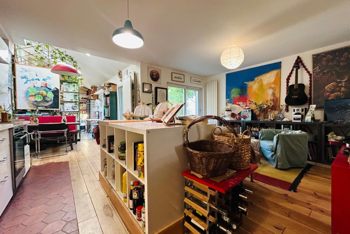 Dès l’entrée, vous serez surpris par le volume et la luminosité du vaste séjour avec sa cuisine ouverte moderne et conviviale. Cet espace de vie s’étend naturellement vers un atelier baigné de lumière grâce à sa large baie vitrée, offrant une atmosphère unique et donnant accès à une terrasse intimiste, parfaite pour profiter de moments de détente en toute tranquillité.