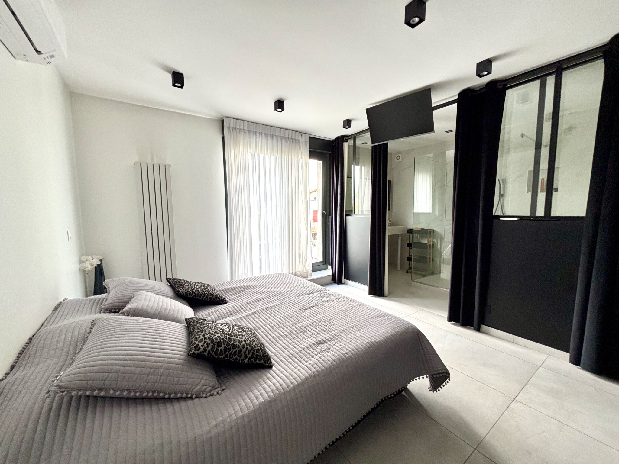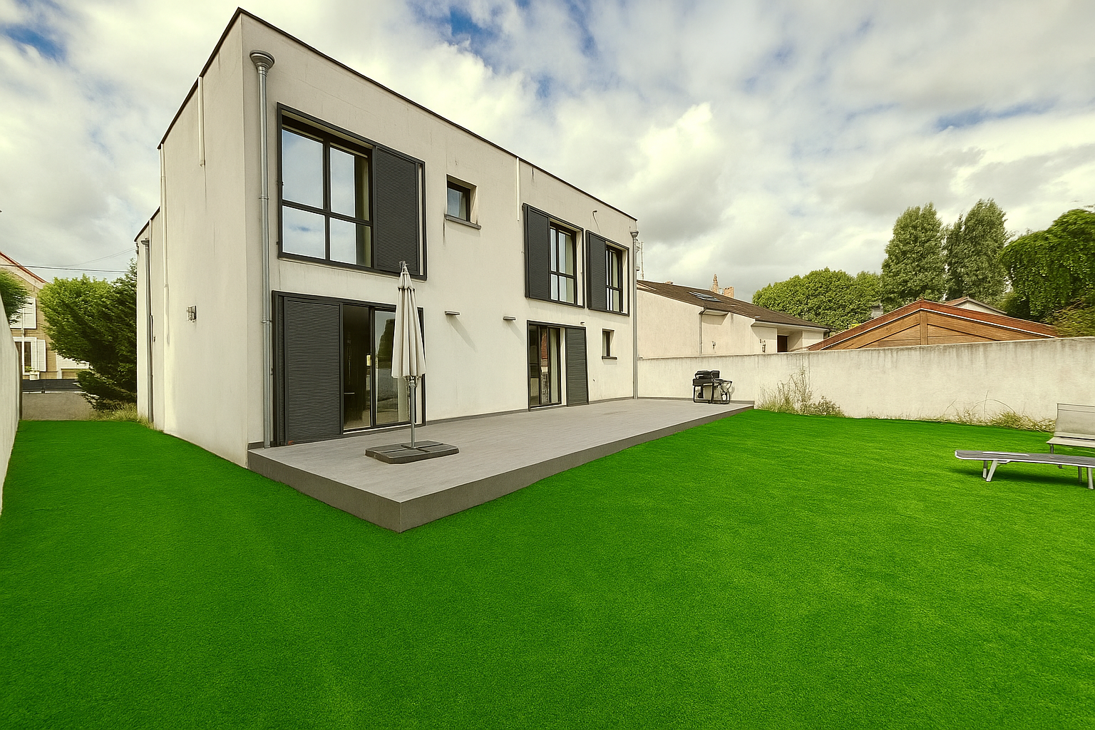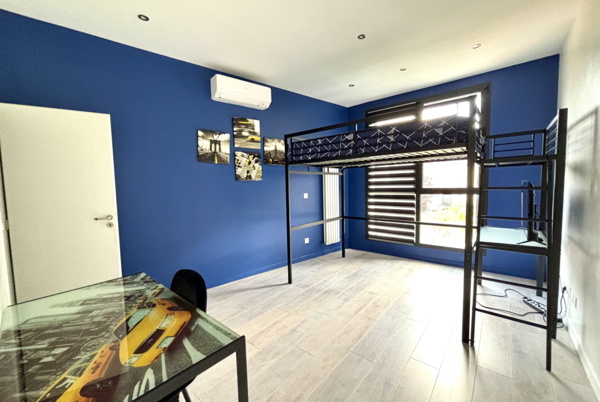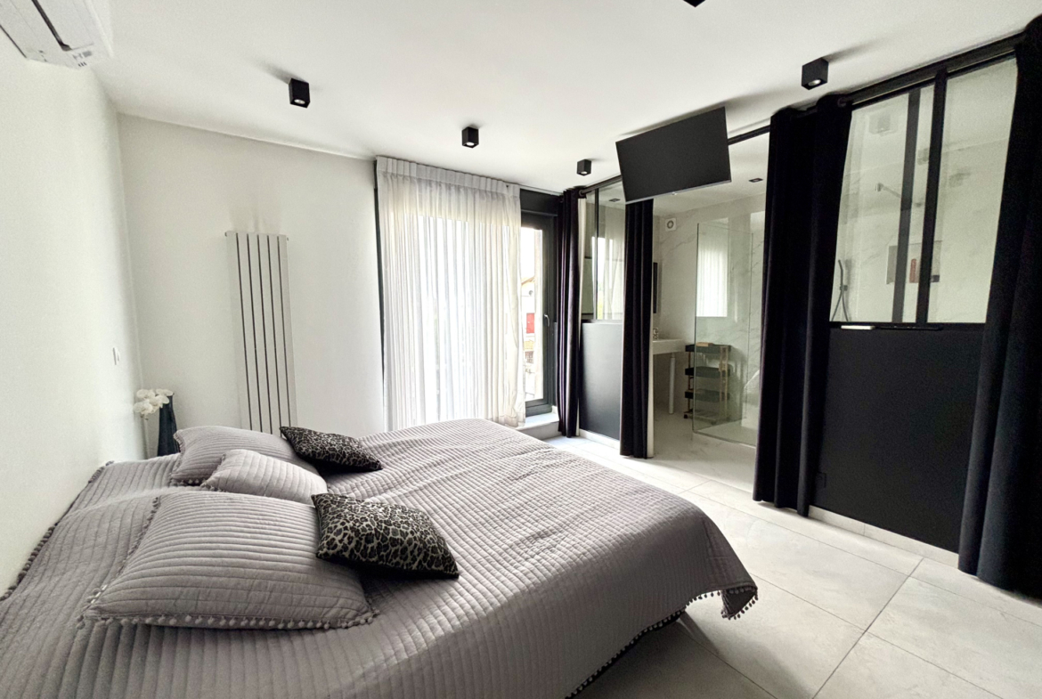 La maison propose cinq chambres, chacune disposant de sa propre salle de bain privative, dont une véritable suite parentale offrant confort, intimité et prestations dignes des plus belles propriétés contemporaines.