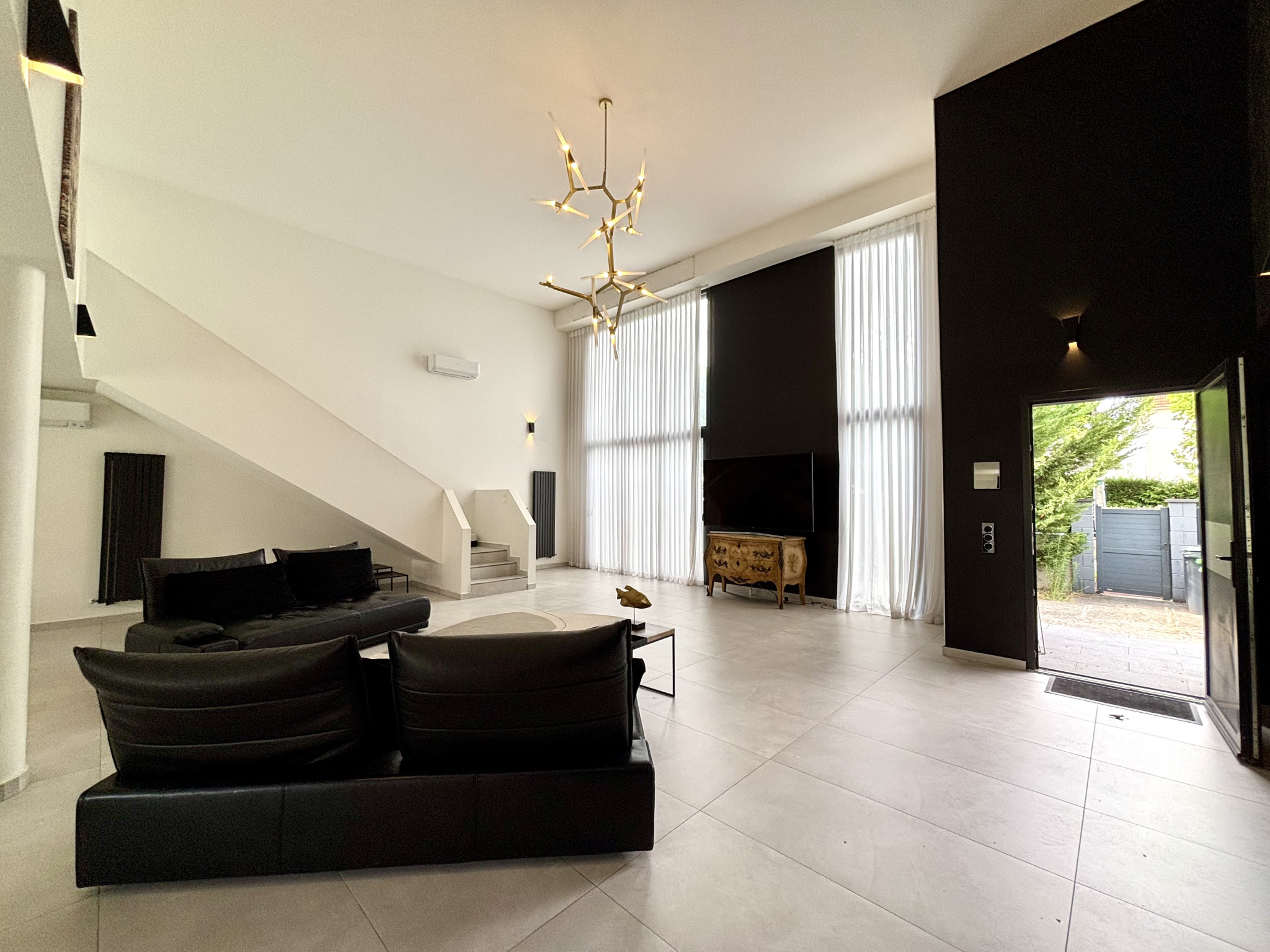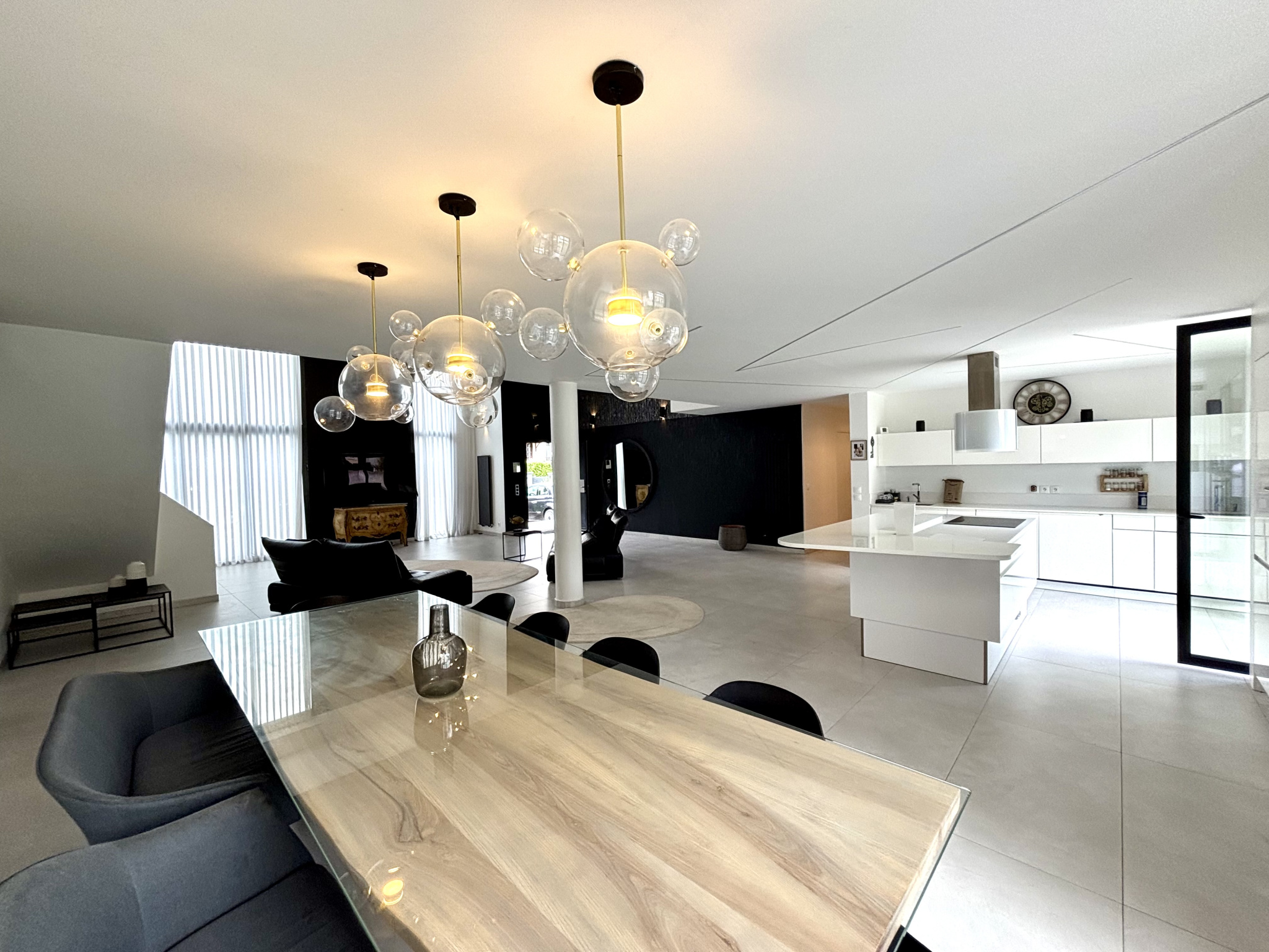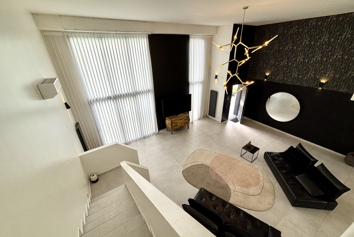 Dès l’entrée, vous serez immédiatement séduit par une pièce de vie exceptionnelle, sublimée par une magnifique hauteur sous plafond et des volumes spectaculaires baignés de lumière. Cet espace s’ouvre sur une superbe cuisine ouverte, entièrement équipée, pensée avec des matériaux de qualité et des finitions haut de gamme — un lieu de réception aussi élégant que convivial.