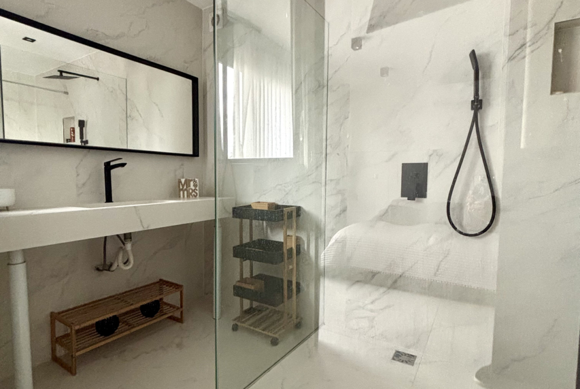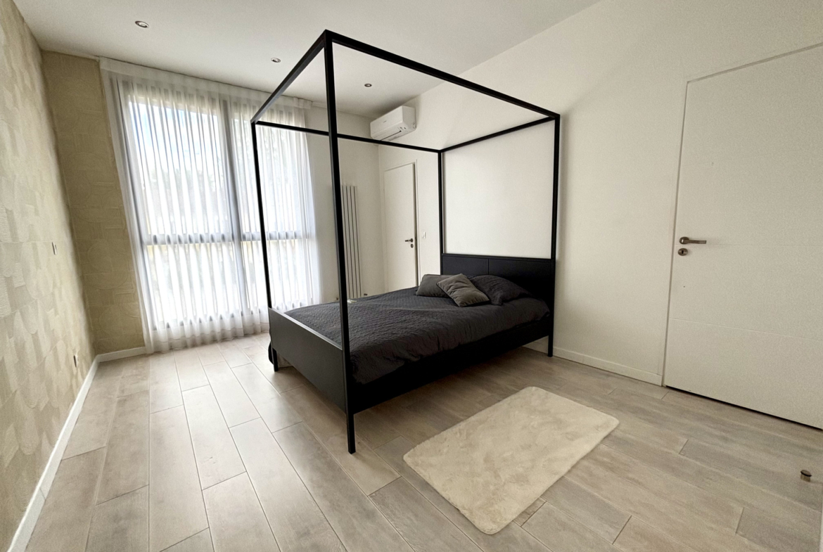 La maison propose cinq chambres, chacune disposant de sa propre salle de bain privative, dont une véritable suite parentale offrant confort, intimité et prestations dignes des plus belles propriétés contemporaines.