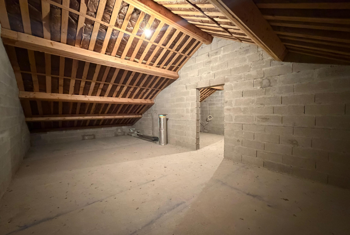Les combles aménageables laissent entrevoir de nombreuses possibilités : création d’une suite parentale, d’un espace bureau ou encore d’un étage entièrement repensé selon vos envies.