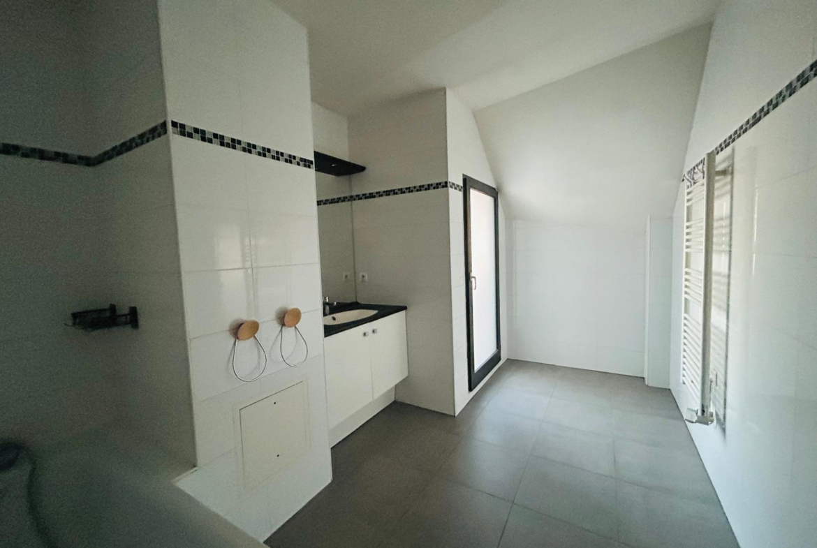L’espace nuit se compose de deux chambres, dont une bénéficiant d’une terrasse privative de 6,61 m2. Vous trouverez également une grande salle de bains moderne ainsi qu’un WC séparé.