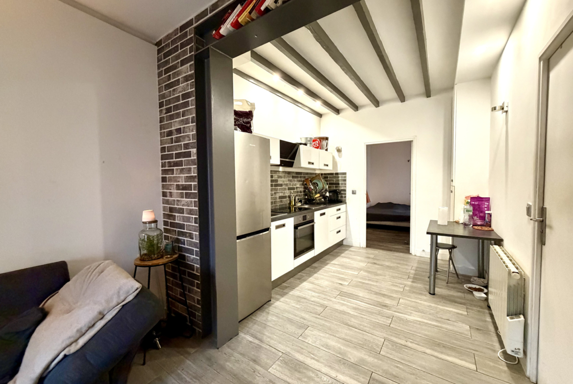 Il offre un bel espace de vie lumineux avec séjour et cuisine ouverte, créant une atmosphère chaleureuse et conviviale. Véritable atout, une charmante terrasse d’environ 15 m2 sur l’avant vient compléter le tout, parfaite pour profiter des beaux jours et aménager un petit coin extérieur agréable.