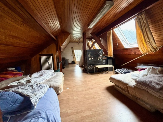 L’intérieur se compose de cinq chambres, dont un magnifique comble aménagé au dernier étage, offrant de nombreuses possibilités d’aménagement.