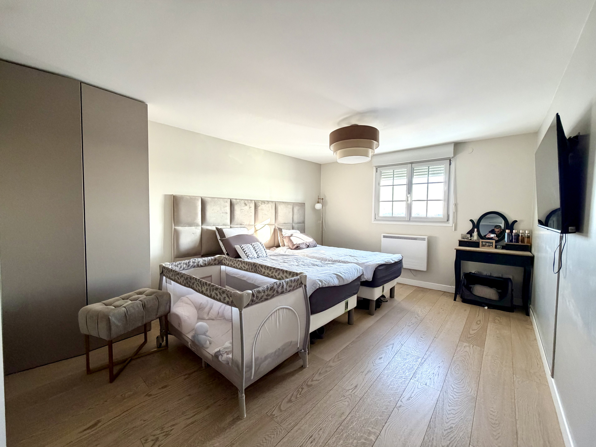 Vous serez immédiatement séduit par son magnifique espace de vie, composé d’un vaste séjour avec cuisine ouverte entièrement équipée, idéal pour recevoir et partager des moments conviviaux. L’appartement offre trois belles chambres, parfaitement agencées pour une vie de famille confortable ou un espace bureau selon vos besoins.