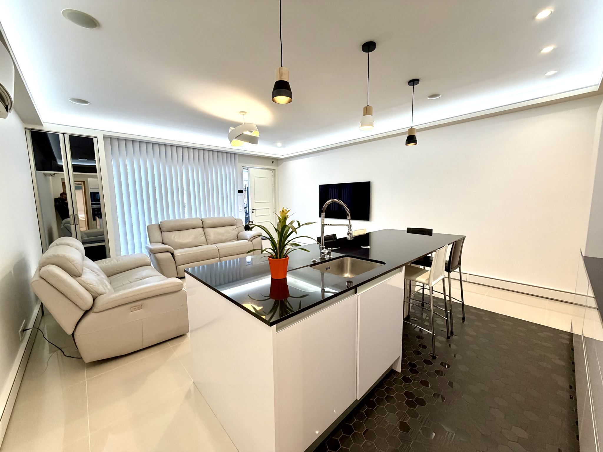 Dès l’entrée, vous serez séduits par un magnifique espace de vie baigné de lumière, avec un séjour convivial et une cuisine ouverte entièrement équipée, pensée avec goût et modernité. Un véritable lieu de vie, chaleureux et fonctionnel.