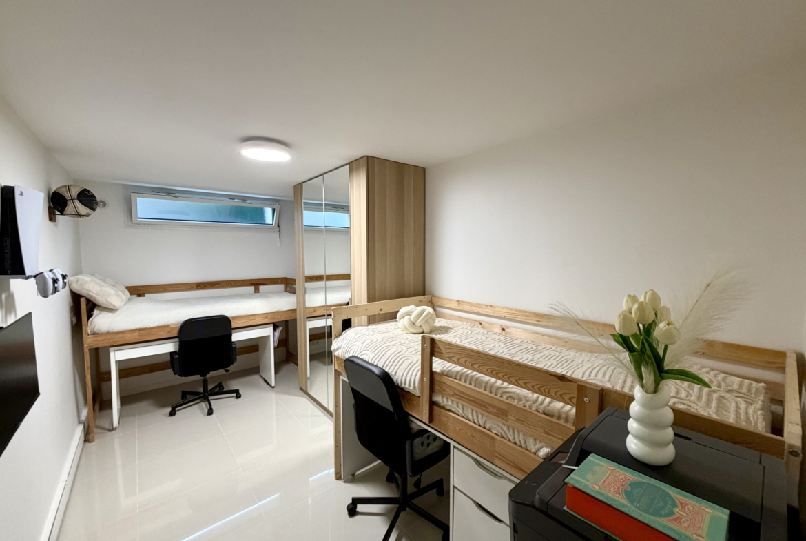 La maison propose deux chambres, chacune disposant de sa propre salle d’eau privative, offrant confort et intimité. Les prestations sont de haute qualité, avec des finitions soignées et des matériaux sélectionnés avec exigence.